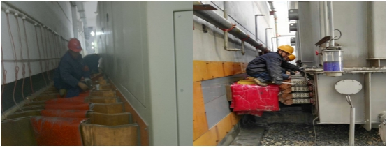 今年,對動力供電系統(tǒng)的濾油和檢修自2016年11月11日開始至2016年12月14日結(jié)束,歷時(shí)34天,在車間負(fù)責(zé)人的帶領(lǐng)下,運(yùn)行各班組按照要求統(tǒng)一協(xié)作,以飽滿的工作熱情與低溫天氣和各種困難作斗爭,將工作重心圍繞在機(jī)組濾油和供電系統(tǒng)全面檢修上,他們有條不紊對計(jì)劃安排的整流柜銅母線螺栓、一次高壓開關(guān)和刀閘的瓷瓶、保護(hù)二次系統(tǒng)的端子排、控制柜進(jìn)行全面清掃及螺絲緊固,對變壓器進(jìn)行清洗,同時(shí)加強(qiáng)設(shè)備巡視,對濾波系統(tǒng)檢查出的刀閘操作機(jī)構(gòu)嚴(yán)重銹蝕,銅鋁過渡連接板開裂等進(jìn)行了及時(shí)處理,認(rèn)真進(jìn)行消缺,保證了供電安全平穩(wěn)。